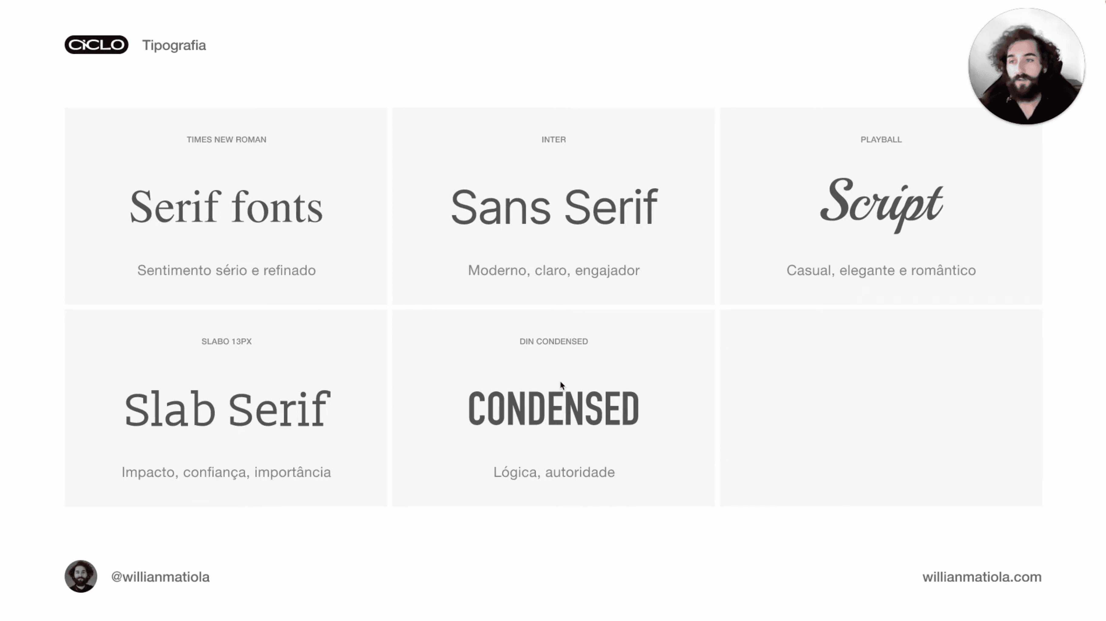 Curso gratuito de Tipografia & UI Design com Willian Matiola: aprenda fundamentos tipográficos para criar interfaces mais consistentes, legíveis e profissionais.